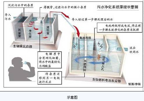 胡志強(qiáng)說,這套凈水系統(tǒng)分為兩個(gè)部分,一個(gè)是生物膜反應(yīng)器,另一個(gè)是微生物燃料電池。這兩個(gè)組件可以過濾水中細(xì)微雜質(zhì),使污水達(dá)到飲用水標(biāo)準(zhǔn)。